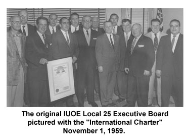 Local 25 was originally a division of Local 825 until it was granted its orginal charter by the International Union of Operating Engineers on November 1, 1959. The charter covered marine construction workers on the eastern seaboard of the U.S. as well as the Great Lakes area. Specifically, most of Local 25's work has been, and still is, in the dredging industry. The first official headquarters was at 675 4th Ave., Brooklyn, NY, in the SIU (Seafarers International Union) union hall, set up by President / Business Manager Stephen J. Leslie. In 1960, another office was opened in Fairview, NJ, before moving to the SIU Hall in Philadelphia, PA in 1963. This office stayed open until 1999. The close relationship between Mr. Leslie and SIU president Paul Hall would continue for years and the two unions are strong allies to this day.